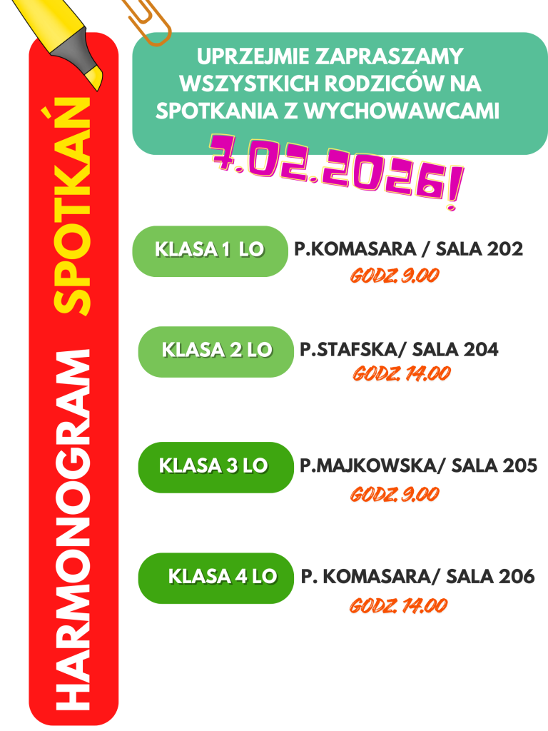 Podajemy harmonogram spotkań.